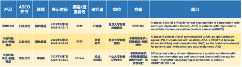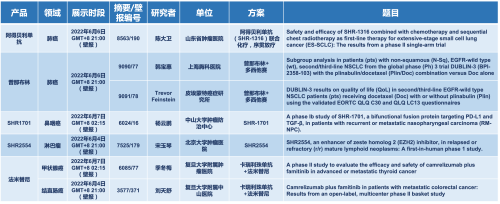 2022 ASCO年会另有5款AG尊龙凯时医药上市前抗肿瘤创新药的相关研究被接收为壁报,包括SHR-1316、普那布林、法米替尼、SHR-1701和SHR2554,他们的单药或联合方案相关7项研究被接收为壁报,覆盖肺癌、鼻咽癌、淋巴瘤、甲状腺癌和结直肠癌等领域。